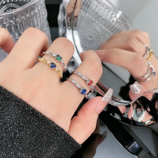 Design Niche Colored Gems Open-end Zircon Ring Retro